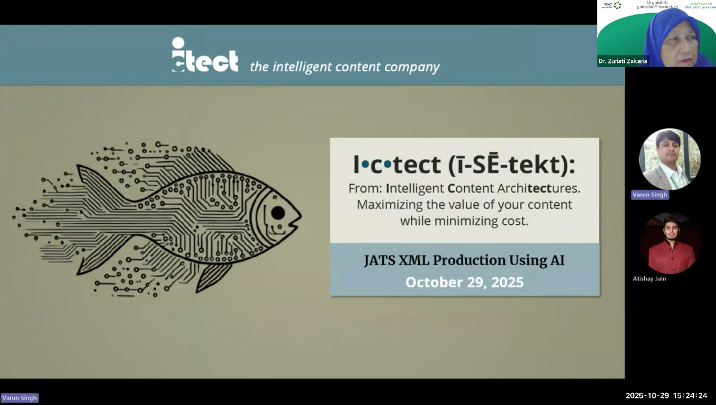 The second presentation was given by Varun Singh, Delivery Manager of ictect, under the theme “JATS XML Production Using AI.” He introduced ictools, which is an AI tool embedded in MS Word for automatically producing JATS XML. He showed a demo for helping attendees understand practically. His colleague also introduced reference management tools, AIRefAssist.